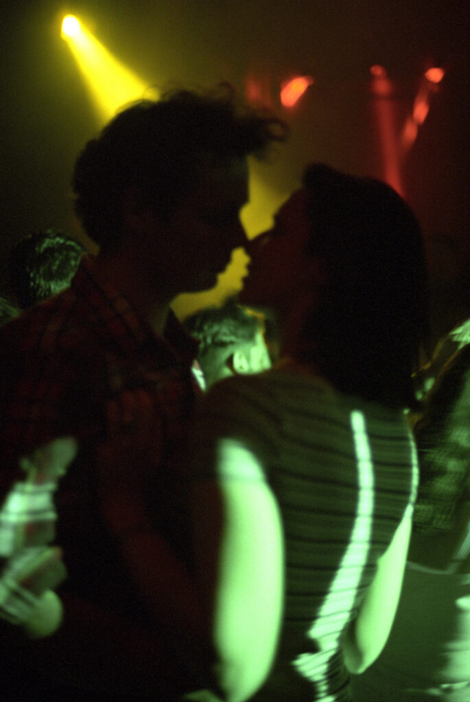 Dans sa série Only Heaven (1994-1998), il explore les marges de la société et plonge dans le monde de la nuit. L’artiste y capture des visages isolés, des corps suspendus dans la lumière artificielle des clubs et des raves party. Le titre fait référence au célèbre club gay Heaven, un lieu à la fois de liberté et d’intimité, où l’individu échappe pour un instant au regard normatif du monde extérieur. Armé d’un matériel lui permettant de se fondre dans la foule, sans utiliser de flash, Darzacq saisit des expressions naturelles, presque volées — des visages relâchés, absorbés par la musique ou la danse. Ces images, souvent floues, traduisent une forme d’incompréhension face au monde : une vision trouble, une perception vacillante de la réalité. Ce flou devient alors langage, symbole d’une distance entre le photographe et la société. On retrouve ici une parenté avec Nan Goldin, que Darzacq admire profondément, même si chez elle, la netteté crue des images au flash remplace le flou poétique de son regard.