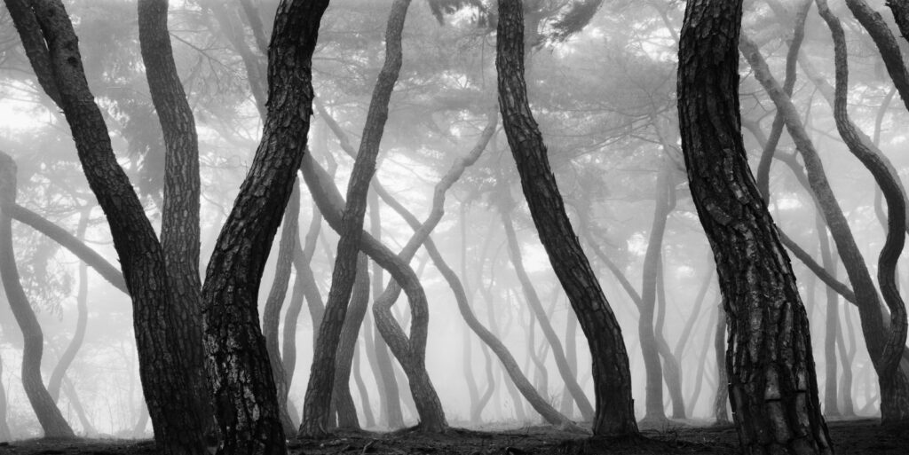 BAE Bien U (1950- ) est un photographe coréen qui s’intéresse particulièrement aux forêts. Dans la culture populaire coréenne, les pins seraient une réincarnation des âmes du peuple coréen. Cette photographie nous invite à une introspection et contemplation de la nature. Une atmosphère presque mystique, qui s’ajoute à la brume épaisse. La technique d’encadrement particulière, qui renforce la profondeur de l’image, permet d’immerger le spectateur dans ce paysage.