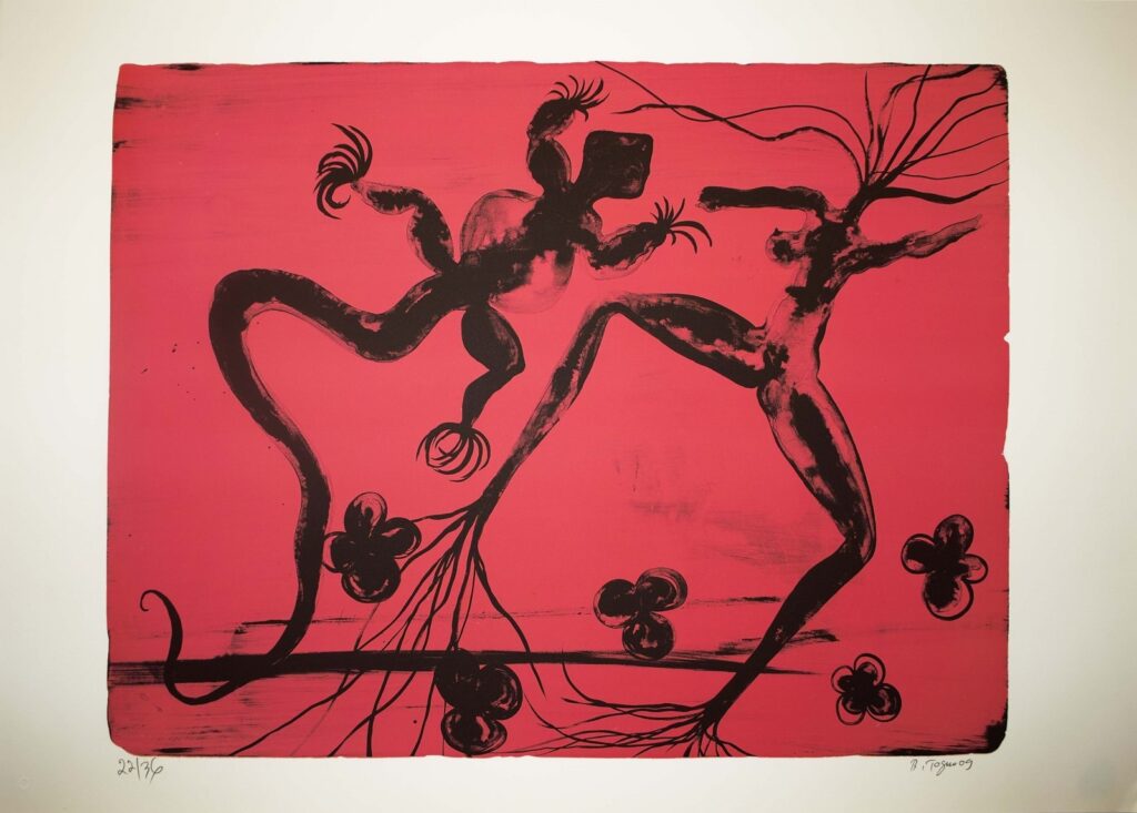 Metamorphosis at Dawn de la série The World Examination est une lithographie réalisée par l’artiste camerounais Barthélémy TOGUO (1967-). Cette lithographie sur papier Lana Royal, présente des silhouettes à la fois végétales et animales, des créatures comme prises en pleine métamorphose.